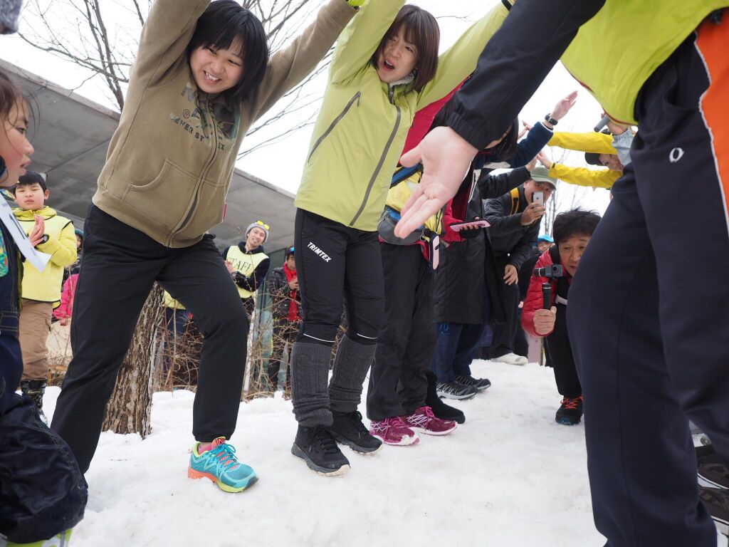 5歳から70歳台まで幅広い年齢層の、県内はもちろん群馬、千葉、神奈川など関東はもちろん大阪の参加者が一斉に雪上トレイルに飛び込んでいきました。